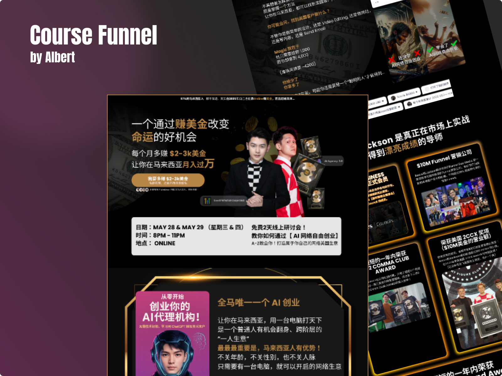 I know what it’s like to start with a big goal and no clear plan. That’s where I began too. I’ve learned from two amazing teachers, Jackson Yew and Reeve Yew, who taught me how to build funnels that actually get results.